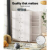 As your shoe collection grows, so should your shoe storage. An Artiss Shoe Cabinet is exactly what you need to keep loose shoes tidy and organised. Made from eco-friendly PP plastic and a strong steel frame, this multipurpose storage cabinet has a 2.5kg weight capacity per shelf, making it ideal for shoes as well as bags, coats or other items to help start your day. The micro-slit design between panels allows for easy ventilation, preventing bacteria growth, Mould growth, and odors. Each panel is water-resistant with a rust-resistant handle ring for each door, making it easy to clean and maintain. Your purchase comes with accessories for two unique cabinet configurations, and shelves can be easily added or removed to store differently sized shoes. You can even expand your shoe cabinet to fit your current storage requirements: simply visit our store and purchase additional units to multiply and expand. With so many options at your disposal, it’s easy to see why the Artiss Shoe Cabinet is the right choice for your entryway, bedroom, or walk-in wardrobe.