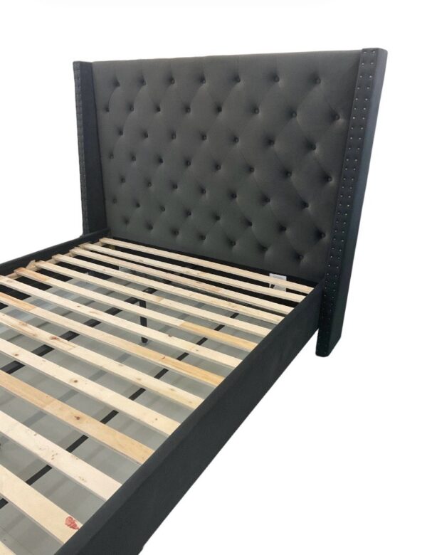 Bedframe has an elegant look with its premium velvet upholstery and tufted Headboard. Its beautifully Quilted Headboard and Grey Colour make the bed a perfect fit for a sophisticated bedroom.