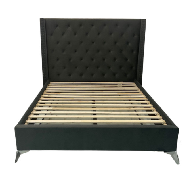 Bedframe has an elegant look with its premium velvet upholstery and tufted Headboard. Its beautifully Quilted Headboard and Grey Colour make the bed a perfect fit for a sophisticated bedroom.
