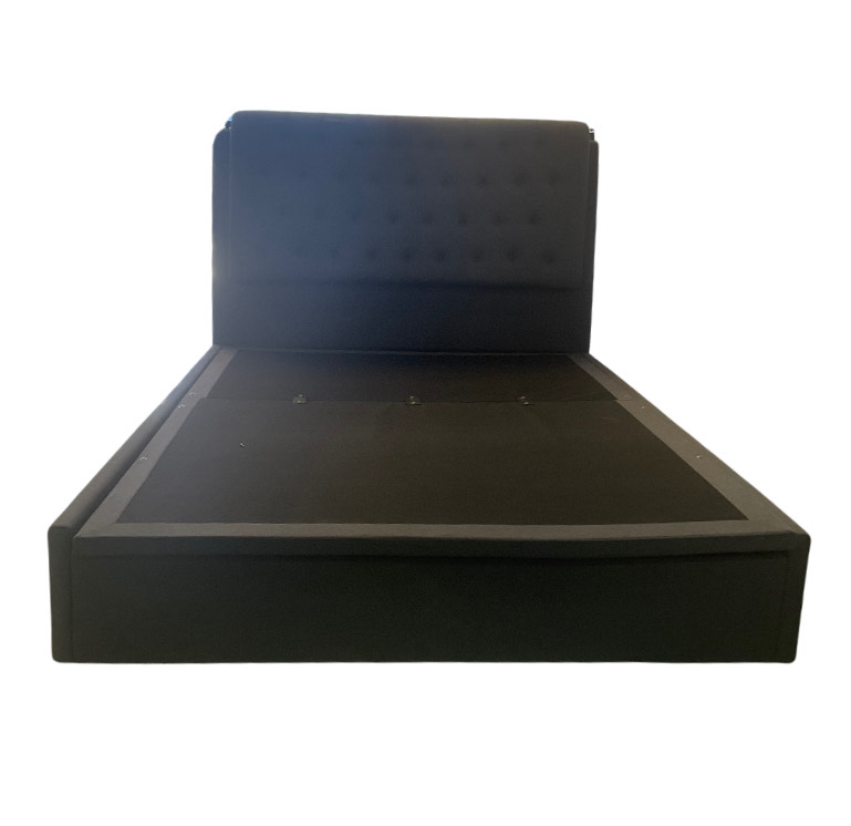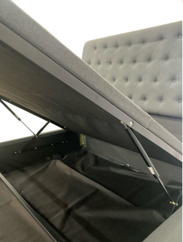 Introducing our elegant bed frame: upholstered in boucle fabric, featuring a gas lift storage mechanism, wooden frame with slat support, padded headboard, smooth edge finish, and sturdy metal connectors for a blend of style and functionality in your bedroom.