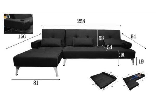 - It can be used freely by one person and used freely when guest or friends come over spacious L-shaped large sofa bed